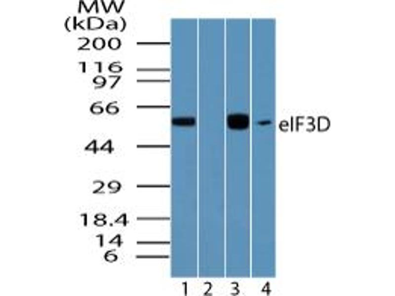 : "EJC core component MLN51 interacts with eIF3 and activates translation." in: Proceedings of the National Academy of Sciences of the United States of America, Vol. 110, Issue 15, pp. 5903-8, (2013) (PubMed).Aliases for EIF3D 抗体