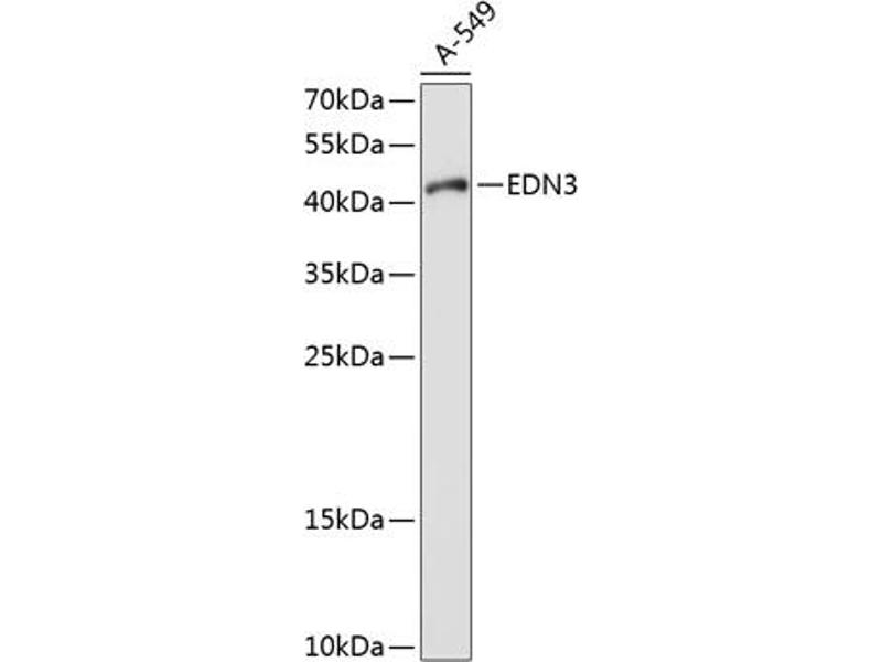 The protein encoded by this gene is a member of the endothelin family. Endothelins are endothelium-derived vasoactive peptides involved in a variety of biological functions. The active form of this protein is a 21 amino acid peptide processed from the precursor protein. The active peptide is a ligand for endothelin receptor type B (EDNRB). The interaction of this endothelin with EDNRB is essential for development of neural crest-derived cell lineages, such as melanocytes and enteric neurons. Mutations in this gene and EDNRB have been associated with Hirschsprung disease (HSCR) and Waardenburg syndrome (WS), which are congenital disorders involving neural crest-derived cells. Four alternatively spliced transcript variants encoding three distinct isoforms have been observed. [provided by RefSeq, Jul 2008].