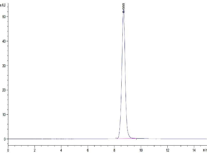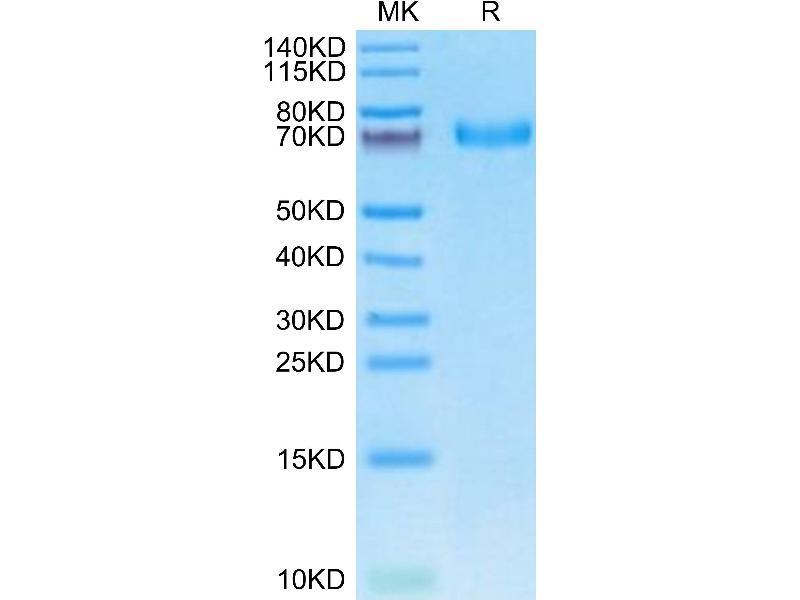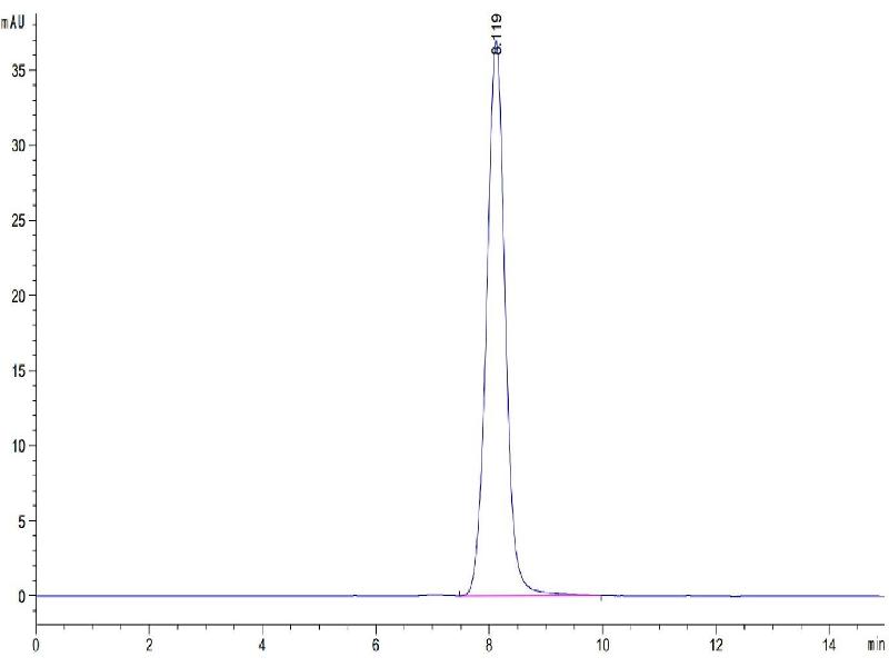 The purity of the protein is greater than 95 % as determined by SDS-PAGE and Coomassie blue staining.