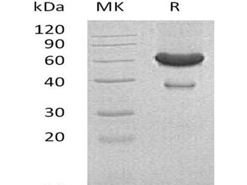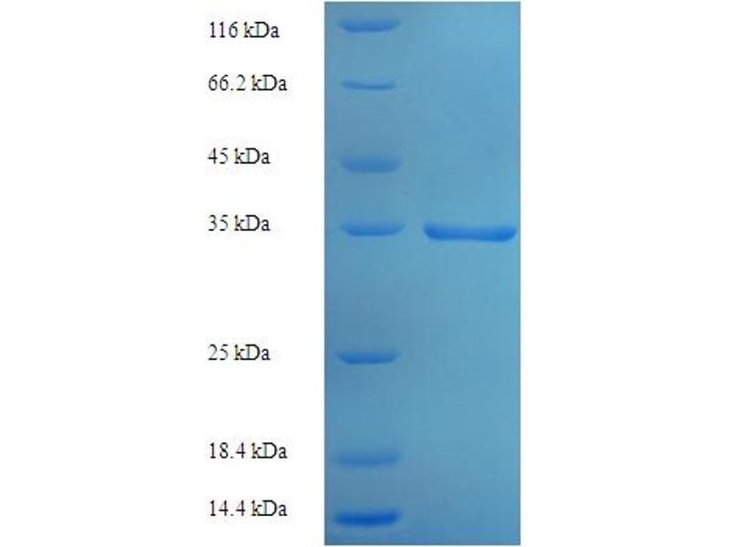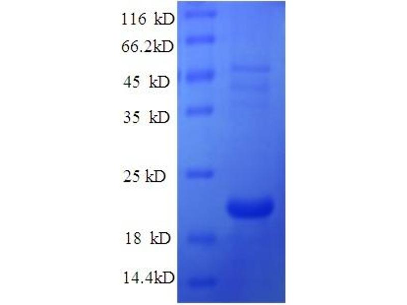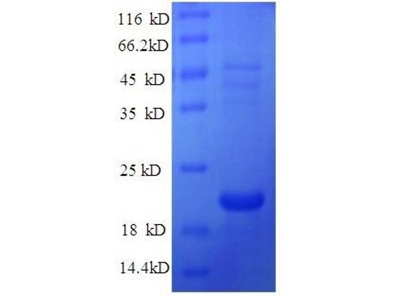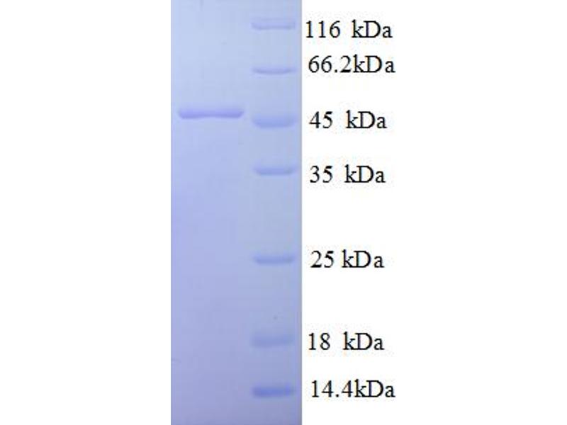 The purity of the protein is greater than 95 % as determined by SDS-PAGE and Coomassie blue staining.