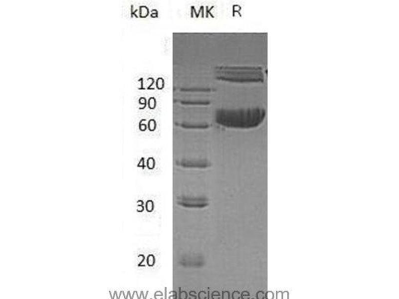 The purity of the protein is greater than 85 % as determined by SDS-PAGE and Coomassie blue staining.