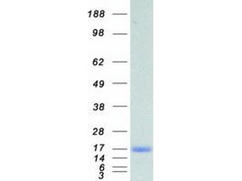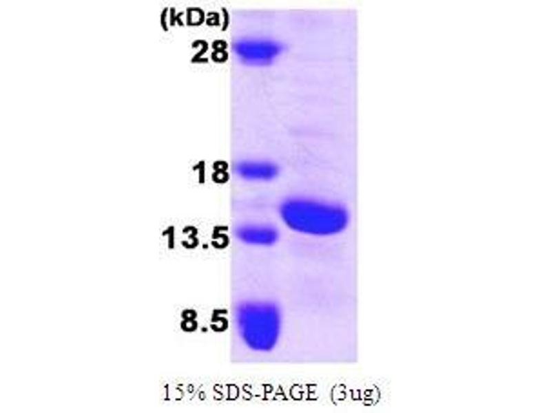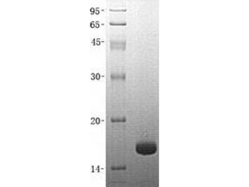 The purity of the protein is greater than 85 % as determined by SDS-PAGE and Coomassie blue staining.