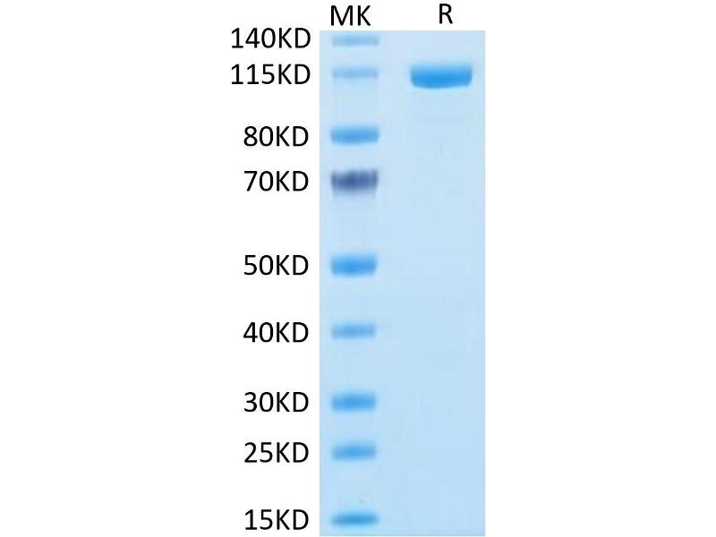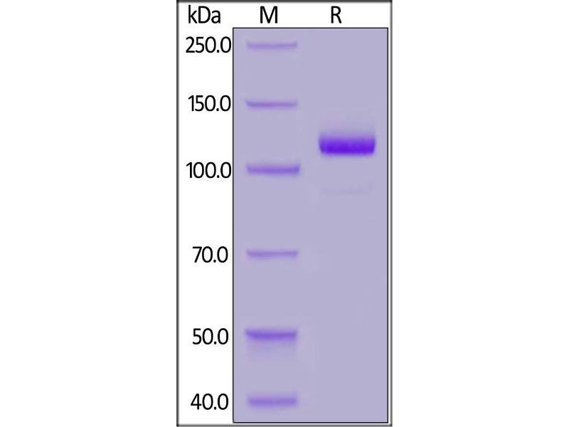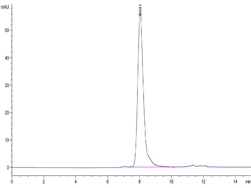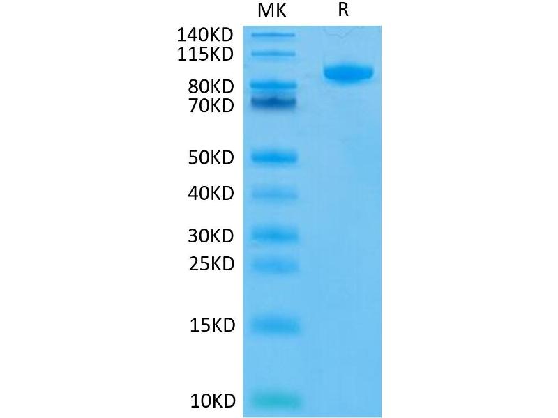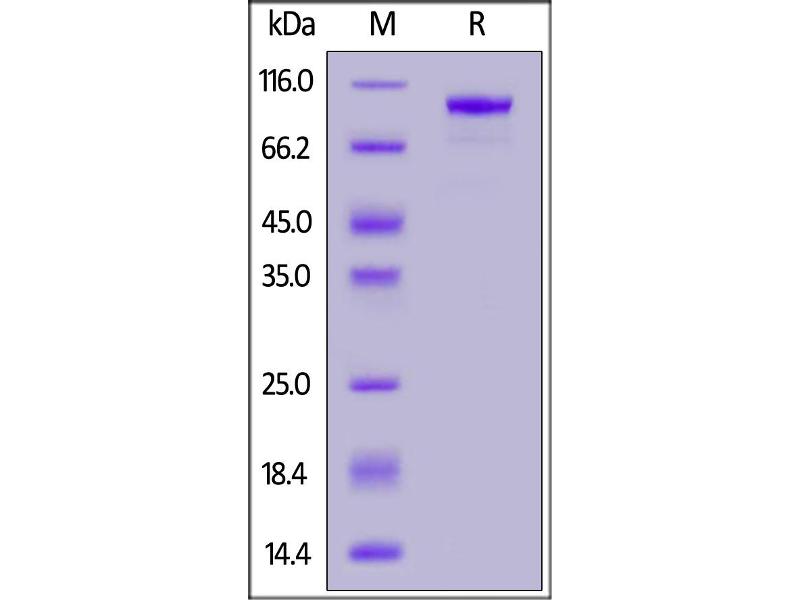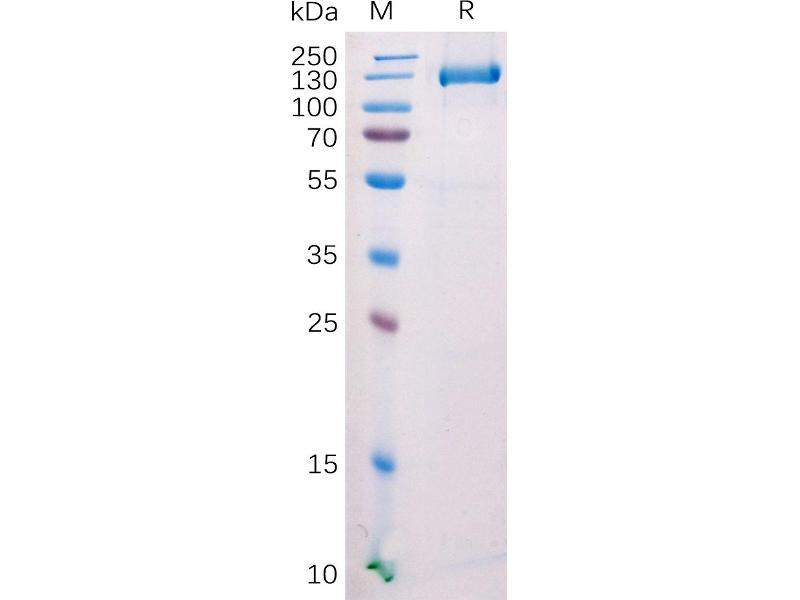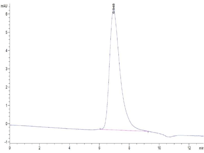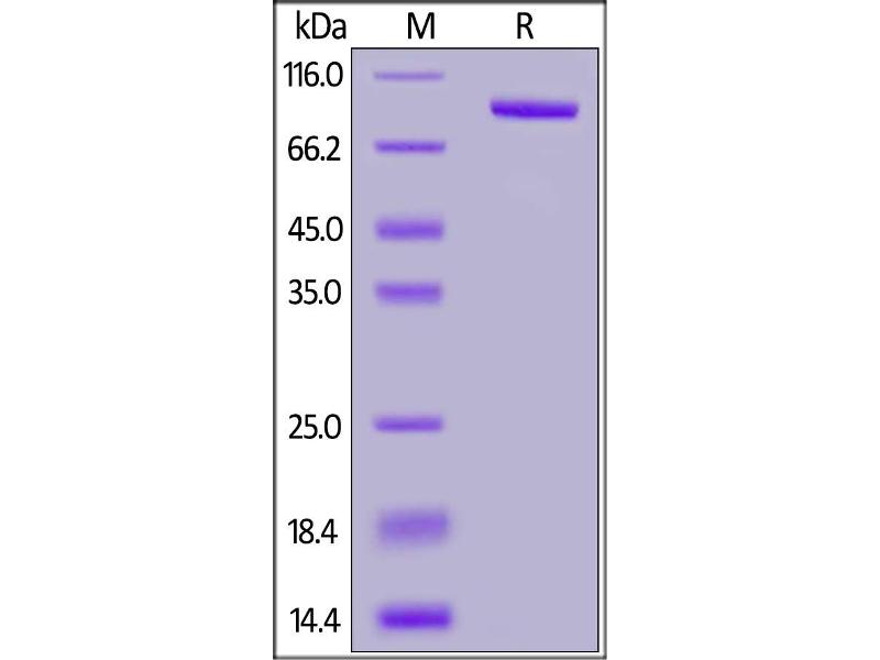 The purity of the protein is greater than 95 % as determined by SDS-PAGE and Coomassie blue staining.