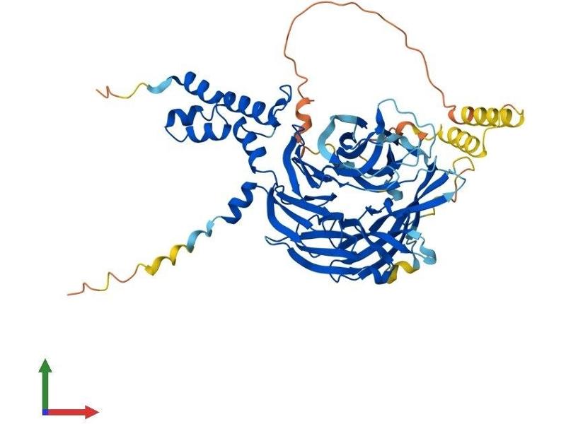 This gene encodes a member of the F-box protein family, members of which are characterized by an approximately 40 amino acid motif, the F-box. The F-box proteins constitute one of the four subunits of ubiquitin protein ligase complex called SCFs (SKP1-cullin-F-box), which function in phosphorylation-dependent ubiquitination. The F-box proteins are divided into three classes: Fbws containing WD-40 domains, Fbls containing leucine-rich repeats, and Fbxs containing either different protein-protein interaction modules or no recognizable motifs. The protein encoded by this gene contains WD-40 domains, in addition to an F-box motif, so it belongs to the Fbw class. Alternatively spliced transcript variants encoding distinct isoforms have been identified for this gene, however, they were found to be nonsense-mediated mRNA decay (NMD) candidates, hence not represented. [provided by RefSeq, Jul 2008].