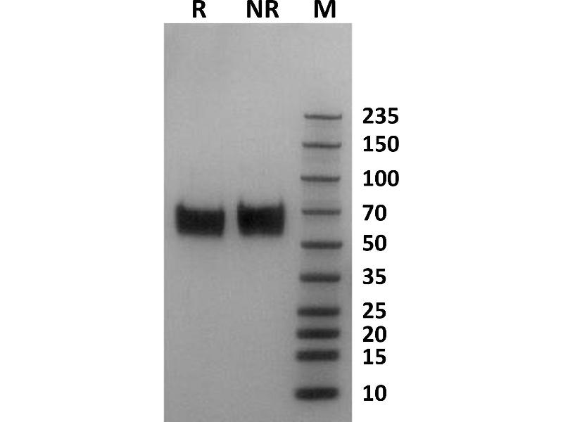 The purity of the protein is greater than 85 % as determined by SDS-PAGE and Coomassie blue staining.