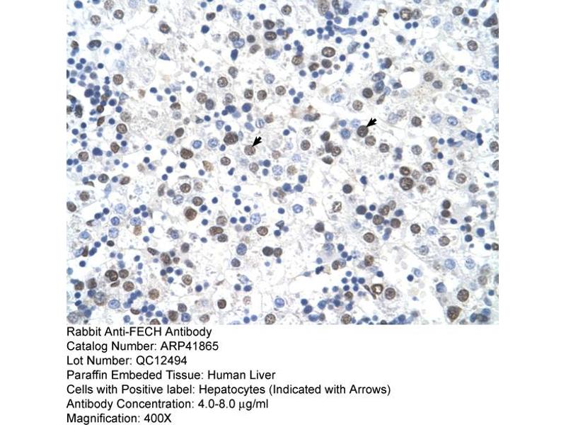 The protein encoded by this gene is localized to the mitochondrion, where it catalyzes the insertion of the ferrous form of iron into protoporphyrin IX in the heme synthesis pathway. Mutations in this gene are associated with erythropoietic protoporphyria. Two transcript variants encoding different isoforms have been found for this gene. A pseudogene of this gene is found on chromosome 3.[provided by RefSeq, May 2010].