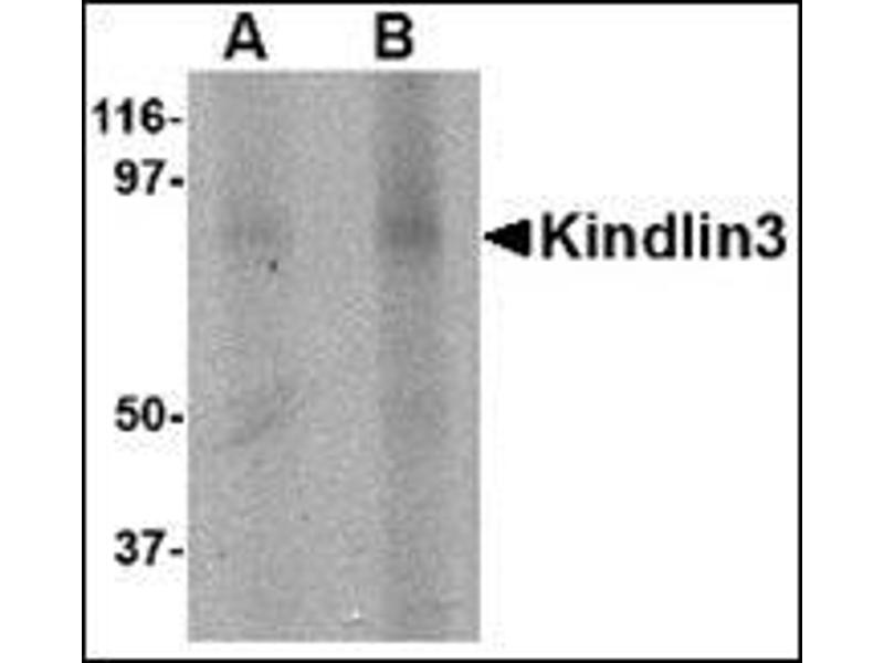 Kindlins are a small family of proteins that mediate protein-protein interactions involved in integrin activation and thereby have a role in cell adhesion, migration, differentiation, and proliferation. The protein encoded by this gene has a key role in the regulation of hemostasis and thrombosis. This protein may also help maintain the membrane skeleton of erythrocytes. Mutations in this gene cause the autosomal recessive leukocyte adhesion deficiency syndrome-III (LAD-III). Alternative splicing results in multiple transcript variants encoding distinct isoforms. [provided by RefSeq, Jan 2010].