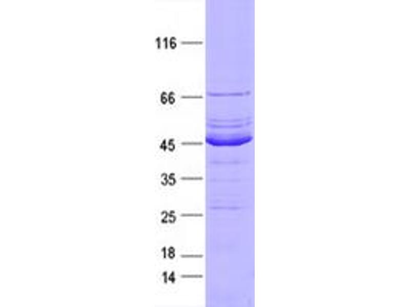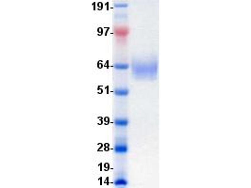 The purity of the protein is greater than 95 % as determined by SDS-PAGE and Coomassie blue staining.