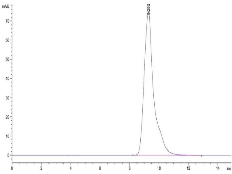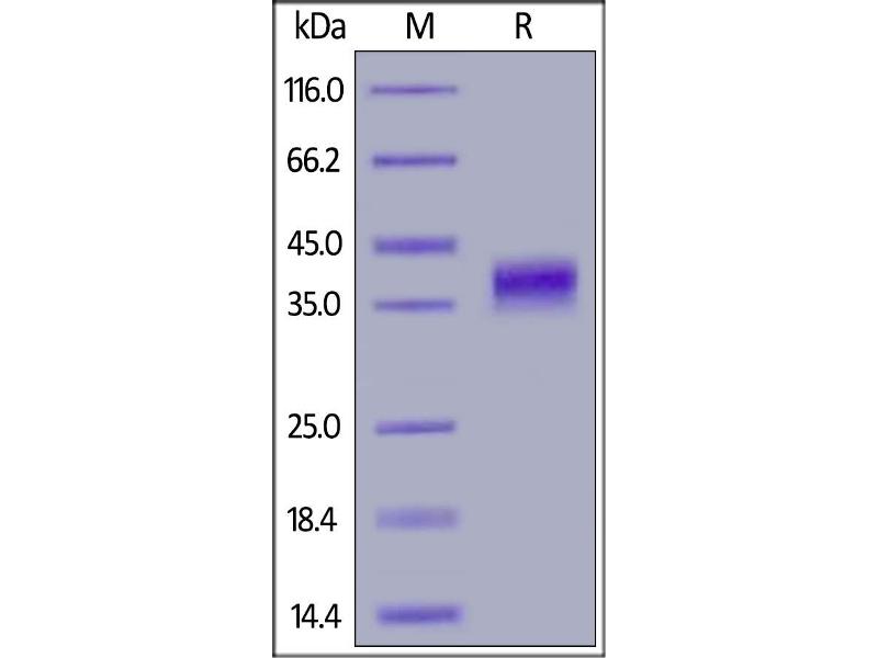 The purity of the protein is greater than 90 % as determined by SDS-PAGE and Coomassie blue staining.