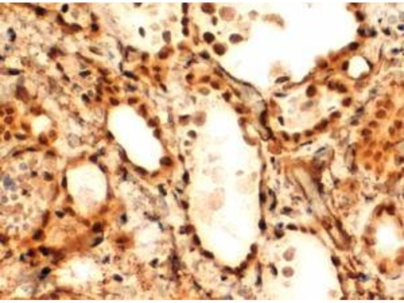 Zhang, Zuo, Nakamura, Nakamura, Wakasa, Kakudo: "Immunohistochemical analysis of thyroid-specific transcription factors in thyroid tumors." in: Pathology international, Vol. 56, Issue 5, pp. 240-5, (2006) (PubMed).
