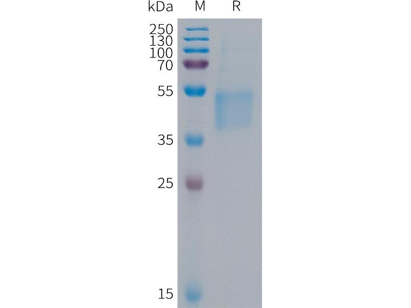 The purity of the protein is greater than 85 % as determined by SDS-PAGE and Coomassie blue staining.