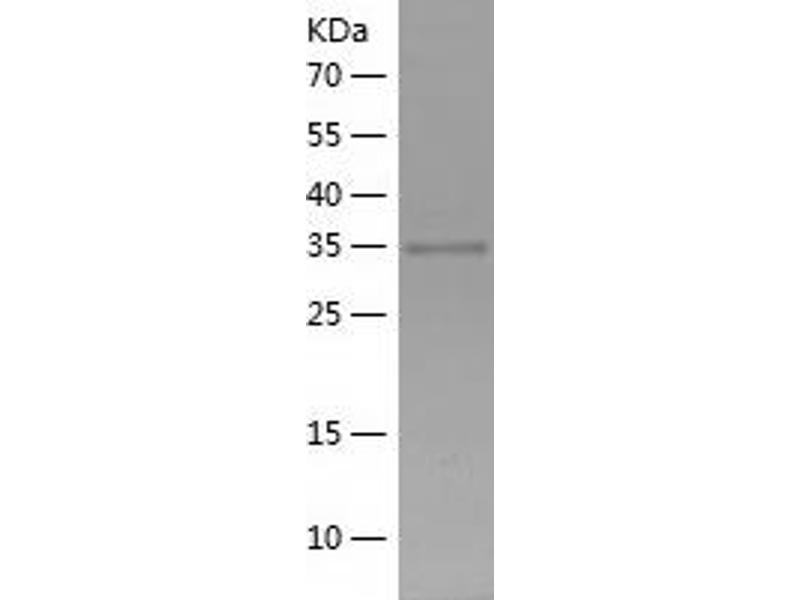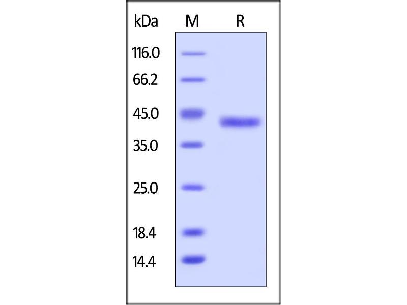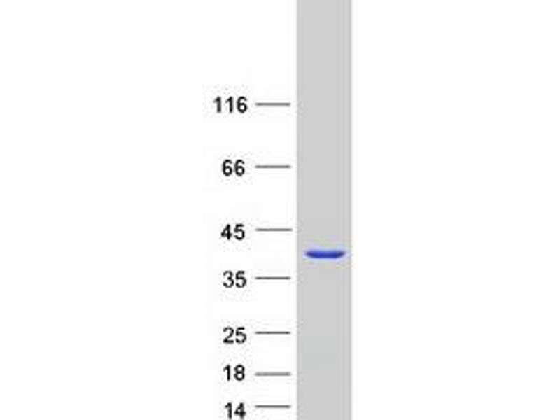 The purity of the protein is greater than 85 % as determined by SDS-PAGE and Coomassie blue staining.