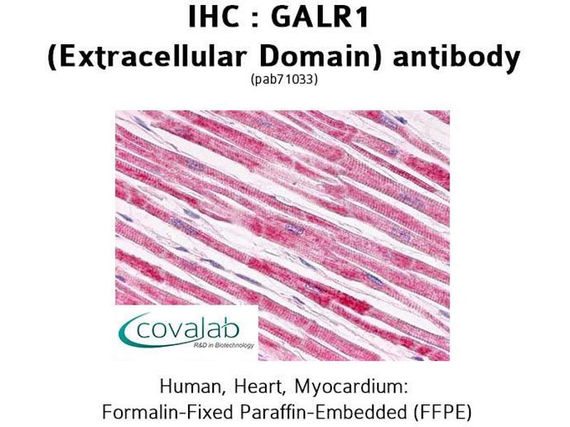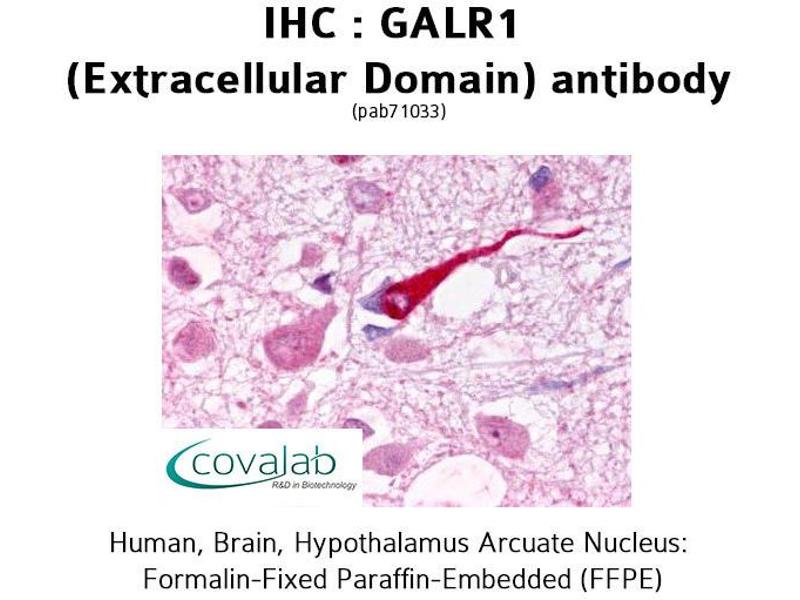 The neuropeptide galanin elicits a range of biological effects by interaction with specific G-protein-coupled receptors. Galanin receptors are seven-transmembrane proteins shown to activate a variety of intracellular second-messenger pathways. GALR1 inhibits adenylyl cyclase via a G protein of the Gi/Go family. GALR1 is widely expressed in the brain and spinal cord, as well as in peripheral sites such as the small intestine and heart. [provided by RefSeq, Jul 2008].