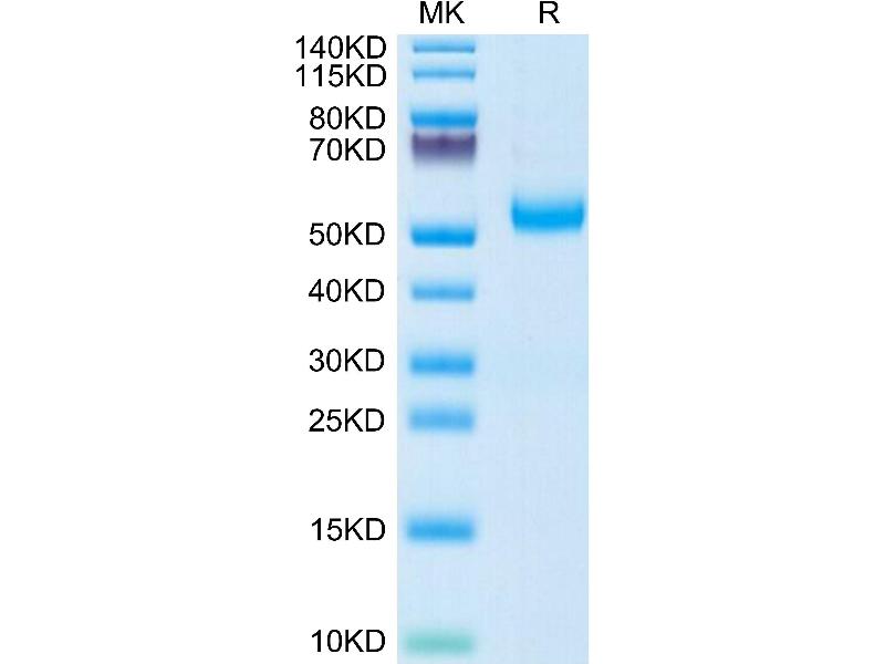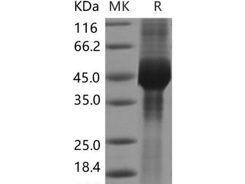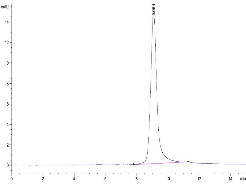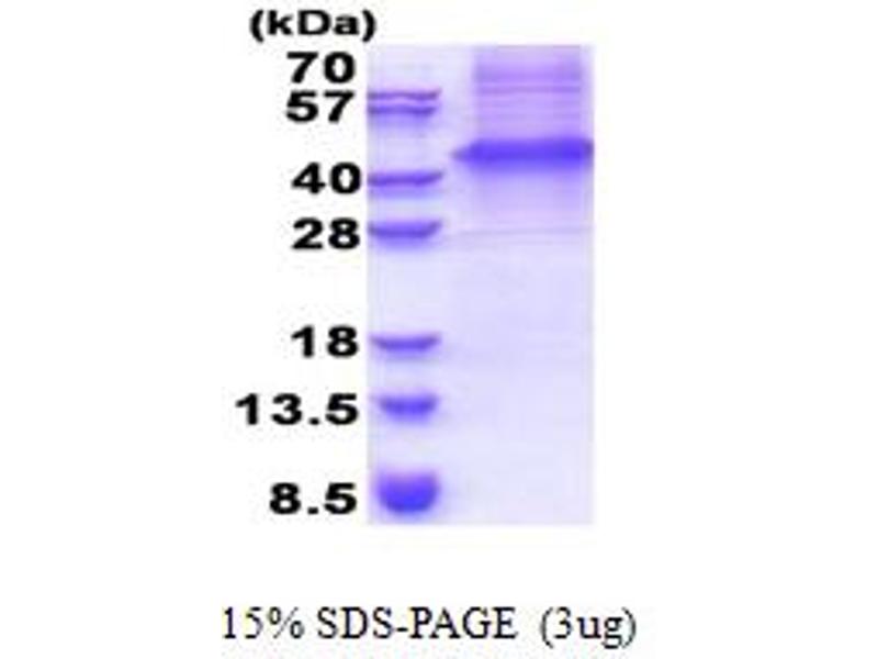 The purity of the protein is greater than 85 % as determined by SDS-PAGE and Coomassie blue staining.