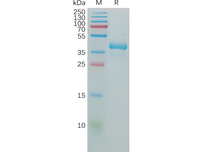 The purity of the protein is greater than 95 % as determined by SDS-PAGE and Coomassie blue staining.