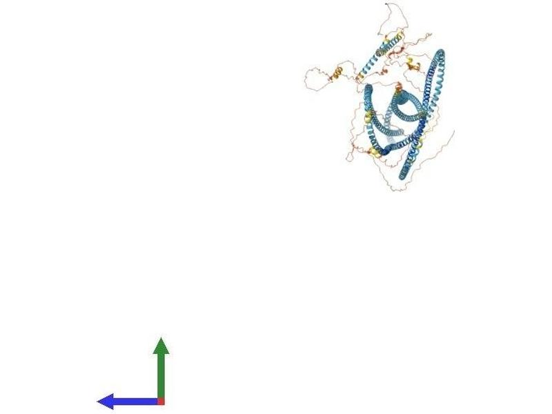 The Golgi apparatus, which participates in glycosylation and transport of proteins and lipids in the secretory pathway, consists of a series of stacked cisternae (flattened membrane sacs). Interactions between the Golgi and microtubules are thought to be important for the reorganization of the Golgi after it fragments during mitosis. This gene encodes a member of the golgin family of proteins which are localized to the Golgi. Its encoded protein has been postulated to play a role in nuclear transport and Golgi apparatus localization. Several alternatively spliced transcript variants that encode different protein isoforms have been described for this gene. [provided by RefSeq, Feb 2010].
