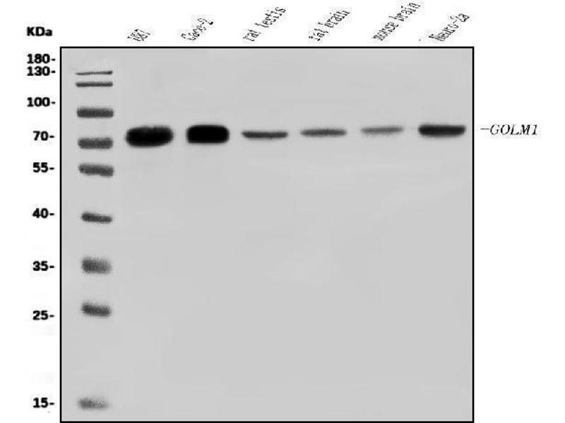 GOLM1 适用: 人 WB, ELISA, FACS 宿主: 兔 Monoclonal 9C2 unconjugated Recombinant Antibody