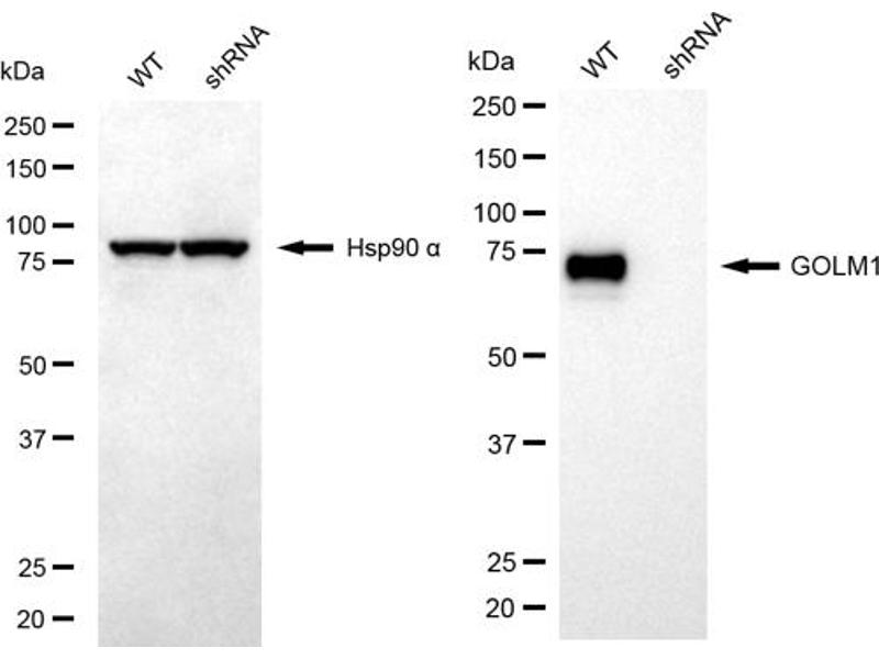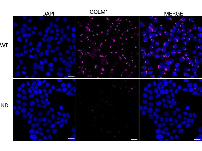 KO Validated GOLM1 适用: 人 WB, IF, ICC, IHC (p) 宿主: 兔 Polyclonal unconjugated