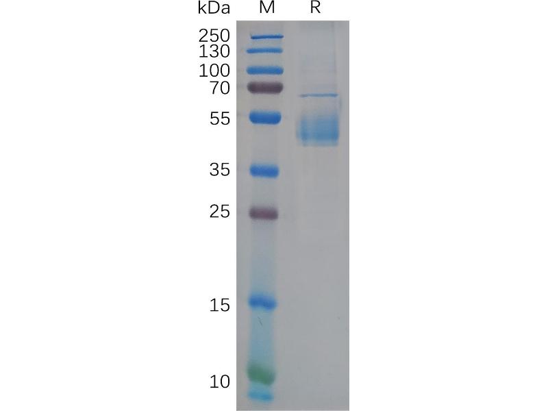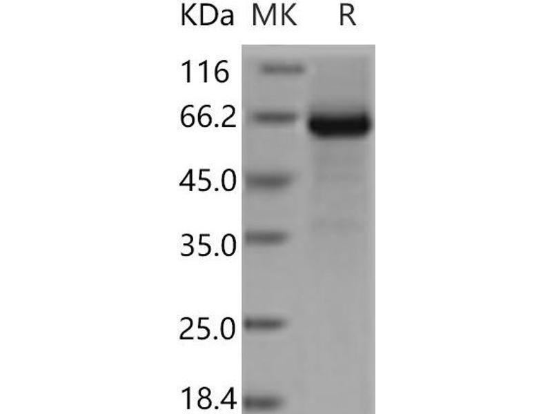 The purity of the protein is greater than 95 % as determined by SDS-PAGE and Coomassie blue staining.