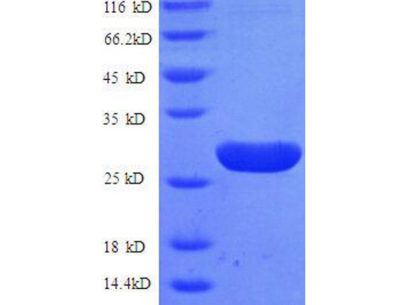 The purity of the protein is greater than 95 % as determined by SDS-PAGE and Coomassie blue staining.