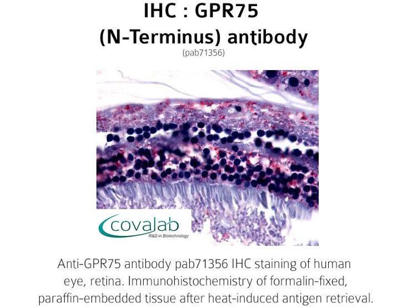 GPR75 is a member of the G protein-coupled receptor family. GPRs are cell surface receptors that activate guanine-nucleotide binding proteins upon the binding of a ligand.[supplied by OMIM, Jul 2002].