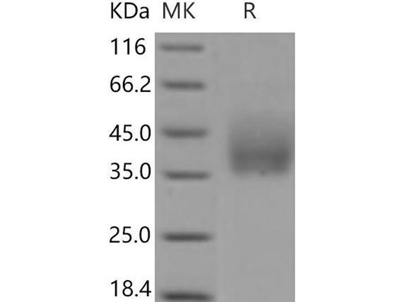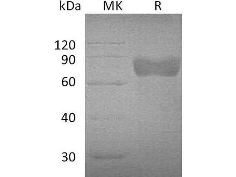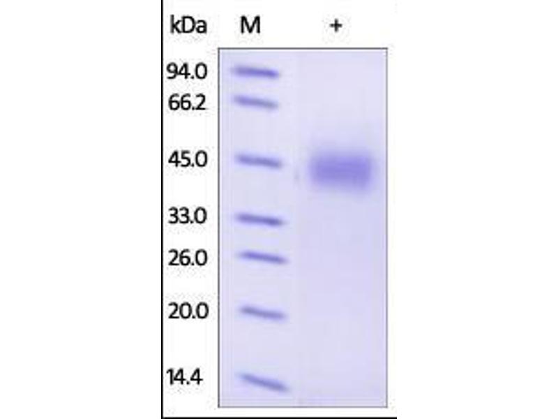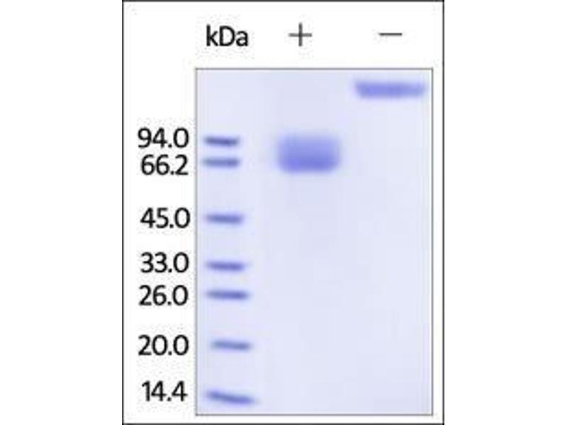 The purity of the protein is greater than 95 % as determined by SDS-PAGE and Coomassie blue staining.