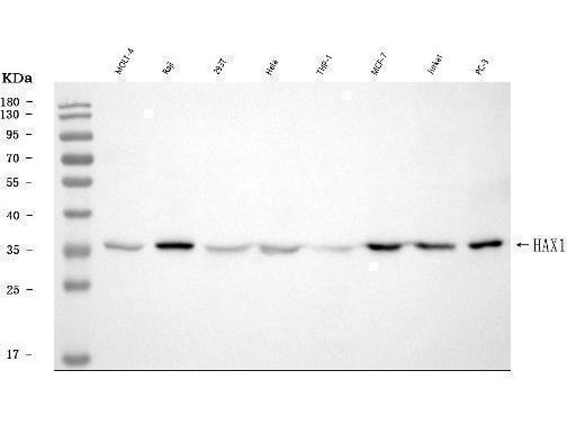 The protein encoded by this gene is known to associate with hematopoietic cell-specific Lyn substrate 1, a substrate of Src family tyrosine kinases. It also interacts with the product of the polycystic kidney disease 2 gene, mutations in which are associated with autosomal-dominant polycystic kidney disease, and with the F-actin-binding protein, cortactin. It was earlier thought that this gene product is mainly localized in the mitochondria, however, recent studies indicate it to be localized in the cell body. Mutations in this gene result in autosomal recessive severe congenital neutropenia, also known as Kostmann disease. Two transcript variants encoding different isoforms have been found for this gene. [provided by RefSeq, Jul 2008].