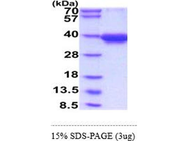 The purity of the protein is greater than 95 % as determined by SDS-PAGE and Coomassie blue staining.