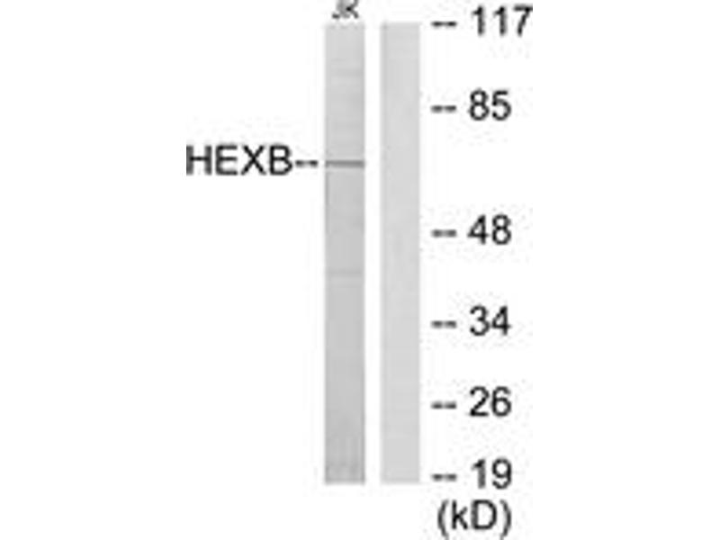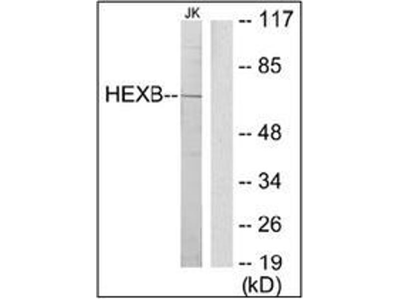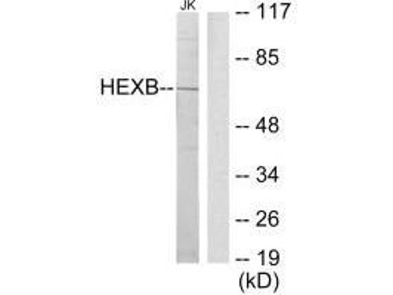 Hexosaminidase B is the beta subunit of the lysosomal enzyme beta-hexosaminidase that, together with the cofactor GM2 activator protein, catalyzes the degradation of the ganglioside GM2, and other molecules containing terminal N-acetyl hexosamines. Beta-hexosaminidase is composed of two subunits, alpha and beta, which are encoded by separate genes. Both beta-hexosaminidase alpha and beta subunits are members of family 20 of glycosyl hydrolases. Mutations in the alpha or beta subunit genes lead to an accumulation of GM2 ganglioside in neurons and neurodegenerative disorders termed the GM2 gangliosidoses. Beta subunit gene mutations lead to Sandhoff disease (GM2-gangliosidosis type II). [provided by RefSeq, Jul 2008].