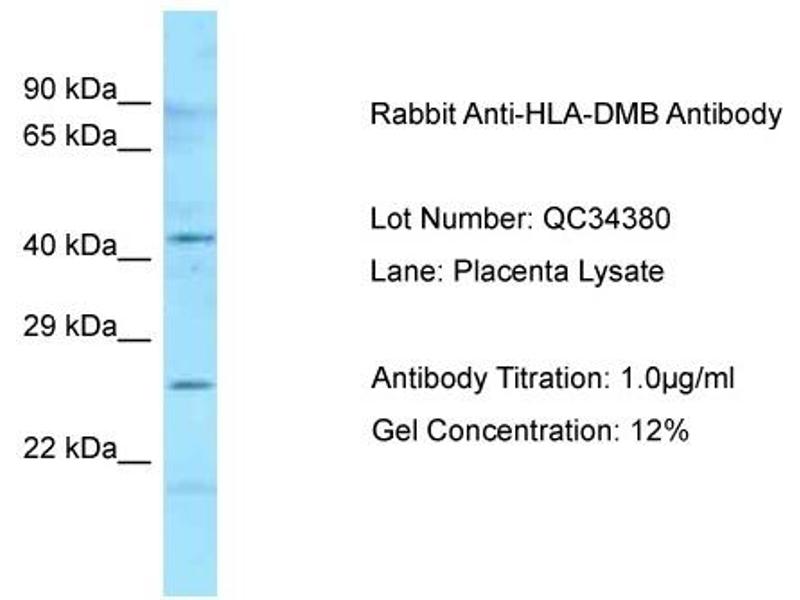 HLA-DMB belongs to the HLA class II beta chain paralogues. This class II molecule is a heterodimer consisting of an alpha (DMA) and a beta (DMB) chain, both anchored in the membrane. It is located in intracellular vesicles. DM plays a central role in the peptide loading of MHC class II molecules by helping to release the CLIP (class II-associated invariant chain peptide) molecule from the peptide binding site. Class II molecules are expressed in antigen presenting cells (APC: B lymphocytes, dendritic cells, macrophages). The beta chain is approximately 26-28 kDa and its gene contains 6 exons. Exon one encodes the leader peptide, exons 2 and 3 encode the two extracellular domains, exon 4 encodes the transmembrane domain and exon 5 encodes the cytoplasmic tail. [provided by RefSeq, Jul 2008].