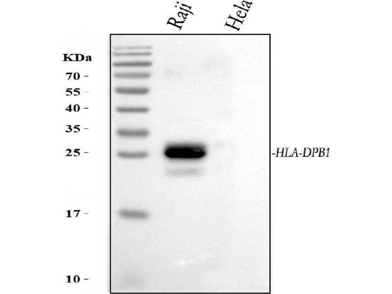 HLA-DPB belongs to the HLA class II beta chain paralogues. This class II molecule is a heterodimer consisting of an alpha (DPA) and a beta chain (DPB), both anchored in the membrane. It plays a central role in the immune system by presenting peptides derived from extracellular proteins. Class II molecules are expressed in antigen presenting cells (APC: B lymphocytes, dendritic cells, macrophages). The beta chain is approximately 26-28 kDa and its gene contains 6 exons. Exon one encodes the leader peptide, exons 2 and 3 encode the two extracellular domains, exon 4 encodes the transmembrane domain and exon 5 encodes the cytoplasmic tail. Within the DP molecule both the alpha chain and the beta chain contain the polymorphisms specifying the peptide binding specificities, resulting in up to 4 different molecules. [provided by RefSeq, Jul 2008].