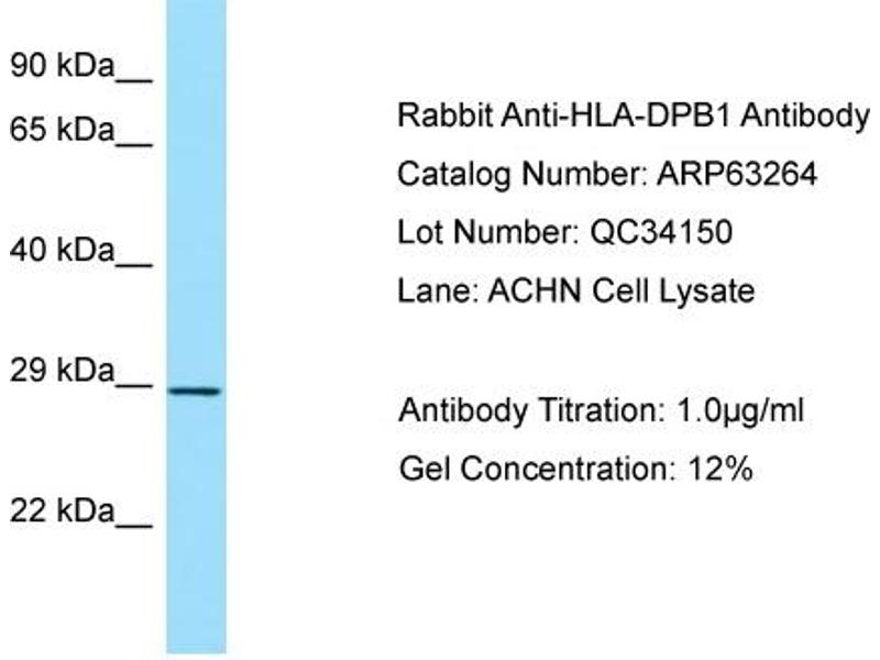 HLA-DPB belongs to the HLA class II beta chain paralogues. This class II molecule is a heterodimer consisting of an alpha (DPA) and a beta chain (DPB), both anchored in the membrane. It plays a central role in the immune system by presenting peptides derived from extracellular proteins. Class II molecules are expressed in antigen presenting cells (APC: B lymphocytes, dendritic cells, macrophages). The beta chain is approximately 26-28 kDa and its gene contains 6 exons. Exon one encodes the leader peptide, exons 2 and 3 encode the two extracellular domains, exon 4 encodes the transmembrane domain and exon 5 encodes the cytoplasmic tail. Within the DP molecule both the alpha chain and the beta chain contain the polymorphisms specifying the peptide binding specificities, resulting in up to 4 different molecules. [provided by RefSeq, Jul 2008].