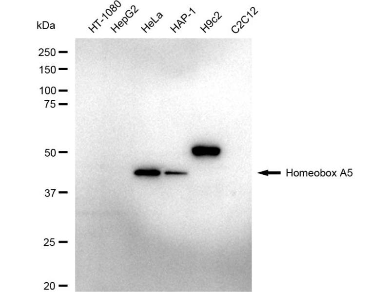 In vertebrates, the genes encoding the class of transcription factors called homeobox genes are found in clusters named A, B, C, and D on four separate chromosomes. Expression of these proteins is spatially and temporally regulated during embryonic development. This gene is part of the A cluster on chromosome 7 and encodes a DNA-binding transcription factor which may regulate gene expression, morphogenesis, and differentiation. Methylation of this gene may result in the loss of its expression and, since the encoded protein upregulates the tumor suppressor p53, this protein may play an important role in tumorigenesis. [provided by RefSeq, Jul 2008].