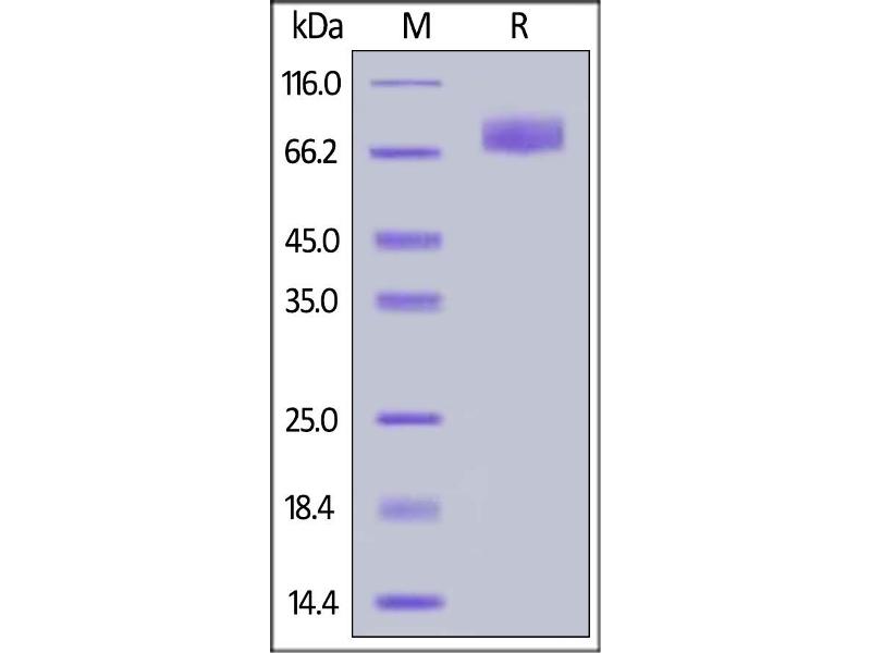 The purity of the protein is greater than 95 % as determined by SDS-PAGE and Coomassie blue staining.