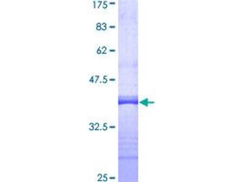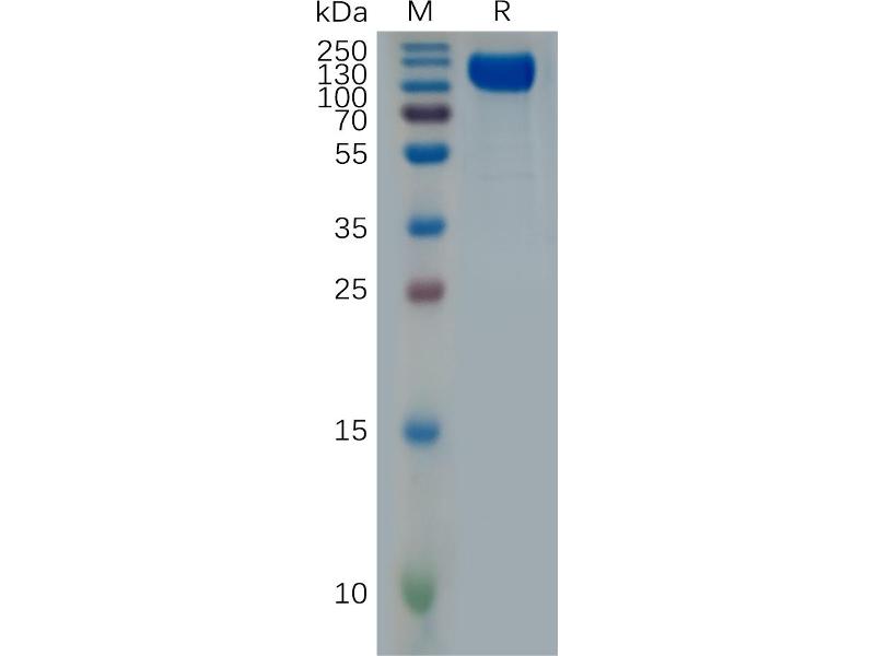 The purity of the protein is greater than 90 % as determined by SDS-PAGE and Coomassie blue staining.