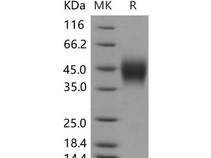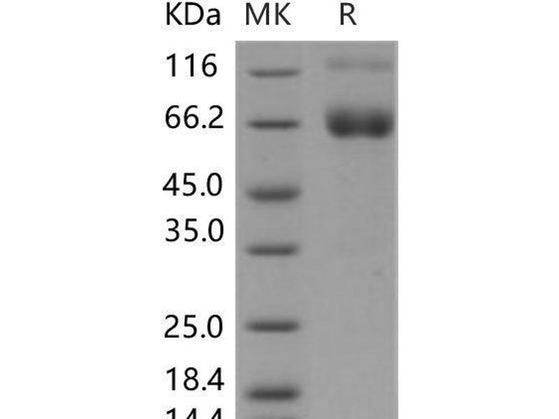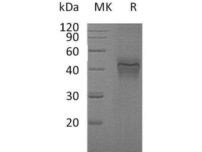 The purity of the protein is greater than 95 % as determined by SDS-PAGE and Coomassie blue staining.