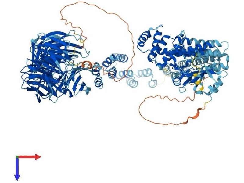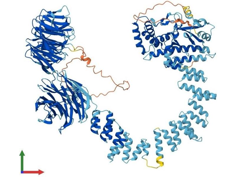 This gene encodes a member of the WD repeat protein family. WD repeats are minimally conserved regions of approximately 40 amino acids typically bracketed by gly-his and trp-asp (GH-WD), which may facilitate formation of heterotrimeric or multiprotein complexes. Members of this family are involved in a variety of cellular processes, including cell cycle progression, signal transduction, apoptosis, and gene regulation. This cytoplasmic protein contains seven WD repeats and an AF-2 domain which function by recruiting coregulatory molecules and in transcriptional activation. Alternate transcriptional splice variants, encoding different isoforms, have been characterized. [provided by RefSeq, Jul 2008].