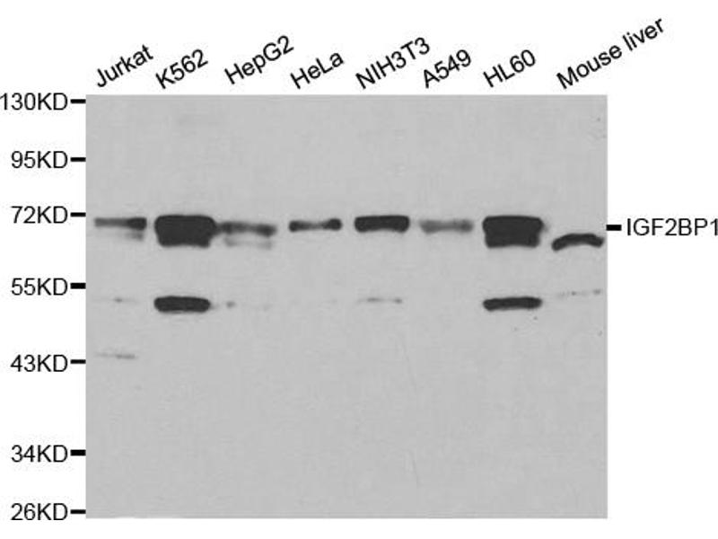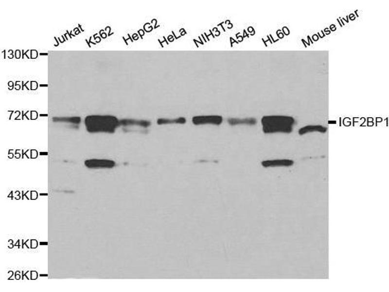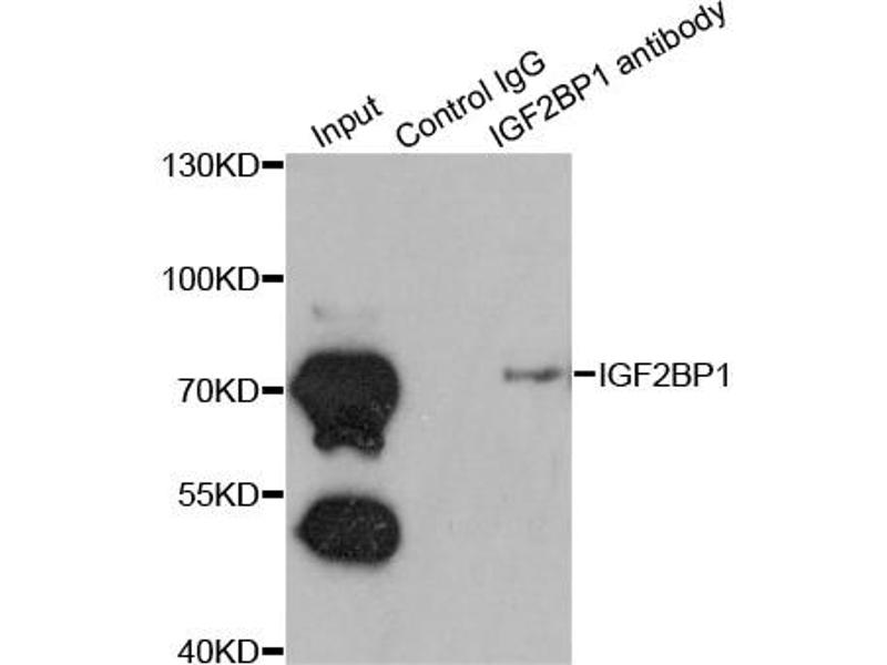 This gene encodes a member of the insulin-like growth factor 2 mRNA-binding protein family. The protein encoded by this gene contains four K homology domains and two RNA recognition motifs. It functions by binding to the mRNAs of certain genes, including insulin-like growth factor 2, beta-actin and beta-transducin repeat-containing protein, and regulating their translation. Two transcript variants encoding different isoforms have been found for this gene. [provided by RefSeq, May 2009].