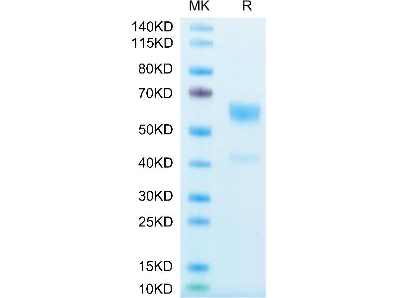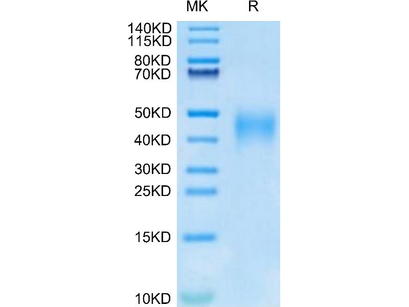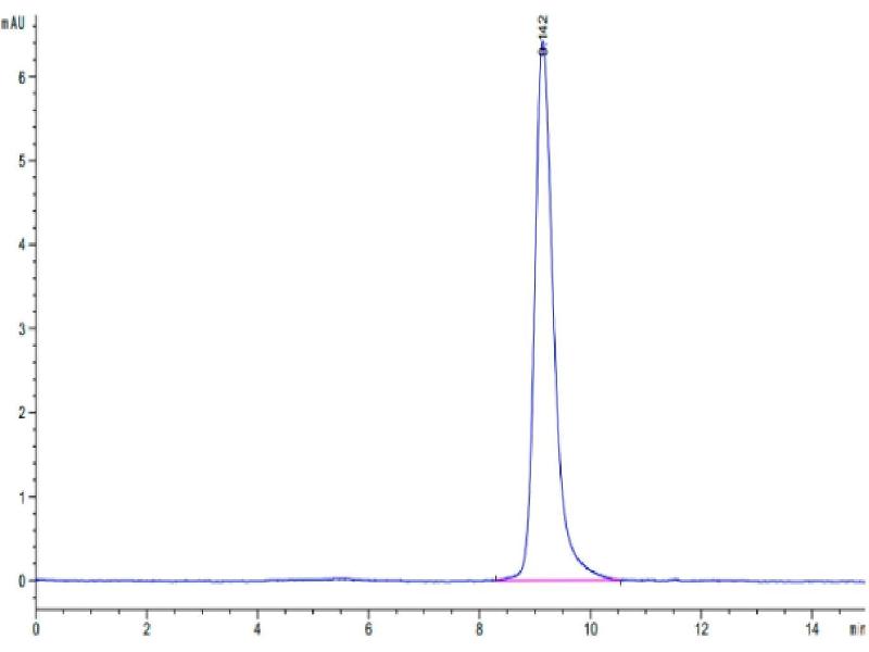 The purity of the protein is greater than 95 % as determined by SDS-PAGE and Coomassie blue staining.