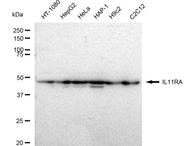 Interleukin 11 is a stromal cell-derived cytokine that belongs to a family of pleiotropic and redundant cytokines that use the gp130 transducing subunit in their high affinity receptors. This gene encodes the IL-11 receptor, which is a member of the hematopoietic cytokine receptor family. This particular receptor is very similar to ciliary neurotrophic factor, since both contain an extracellular region with a 2-domain structure composed of an immunoglobulin-like domain and a cytokine receptor-like domain. Multiple alternatively spliced transcript variants have been found for this gene. [provided by RefSeq, Jun 2012].