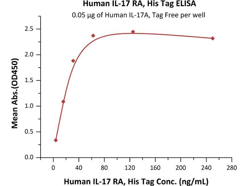 Interleukin 17A (IL17A)is a proinflammatory cytokine secreted by activated T-lymphocytes. It is a potent inducer of the maturation of CD34-positive hematopoietic precursors into neutrophils. The protein encoded by this gene (interleukin 17A receptor\; IL17RA) is a ubiquitous type I membrane glycoprotein that binds with low affinity to interleukin 17A. Interleukin 17A and its receptor play a pathogenic role in many inflammatory and autoimmune diseases such as rheumatoid arthritis. Like other cytokine receptors, this receptor likely has a multimeric structure. [provided by RefSeq, Jul 2008].