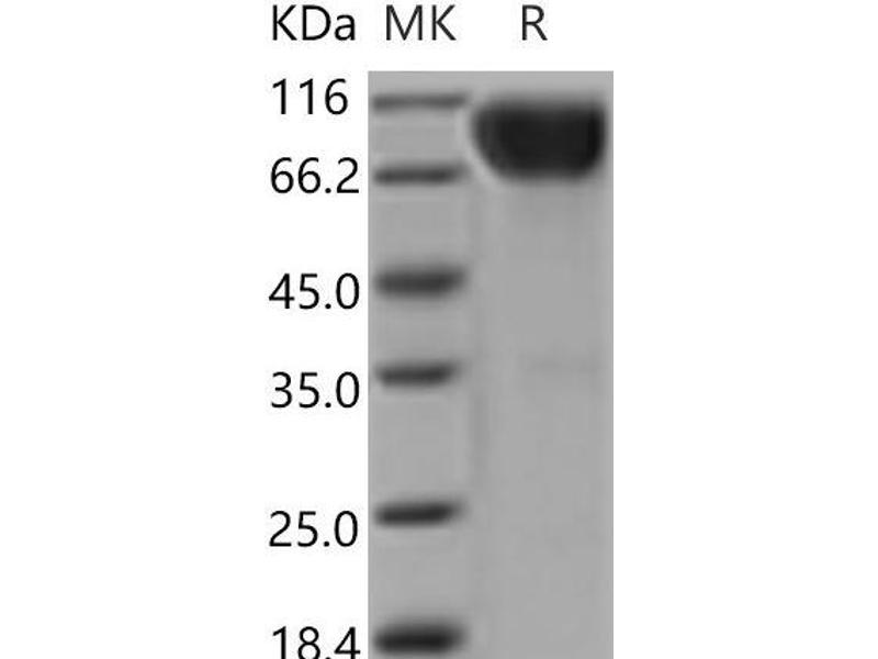 The purity of the protein is greater than 95 % as determined by SDS-PAGE and Coomassie blue staining.