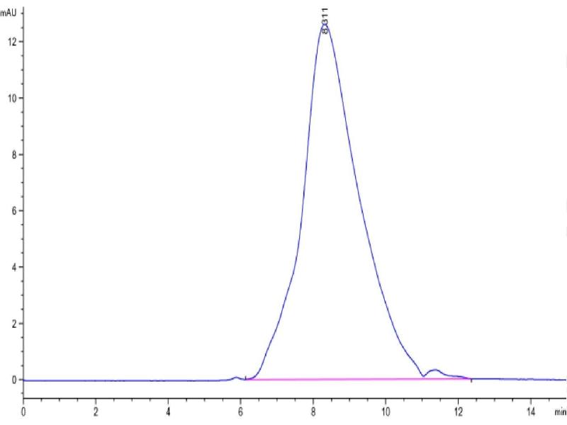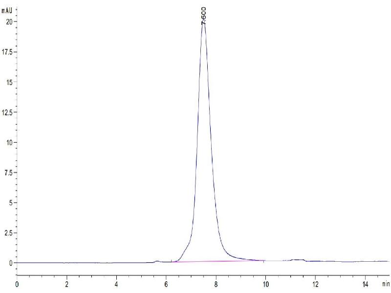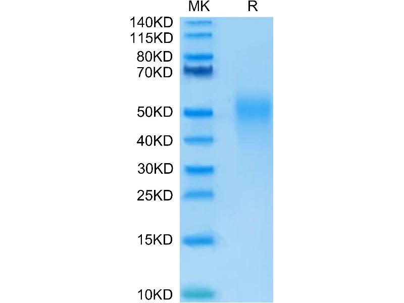 The purity of the protein is greater than 95 % as determined by SDS-PAGE and Coomassie blue staining.
