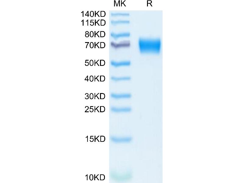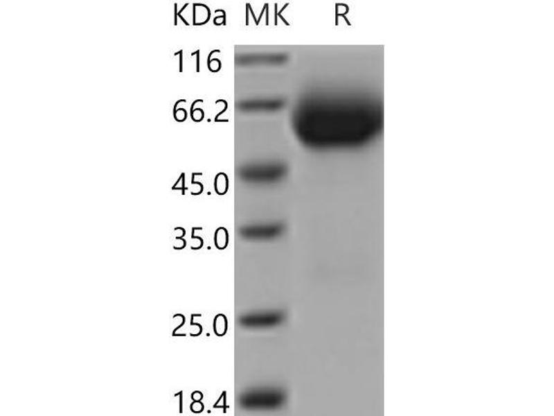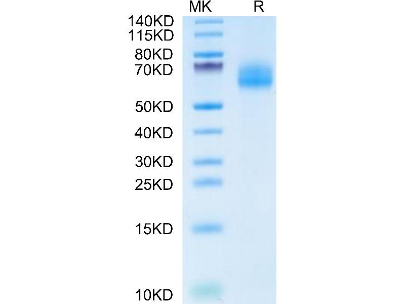 The purity of the protein is greater than 95 % as determined by SDS-PAGE and Coomassie blue staining.