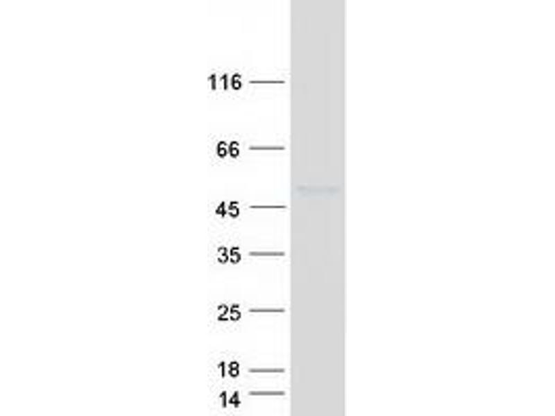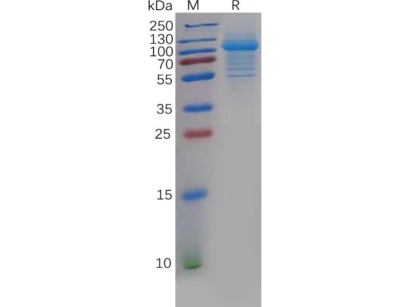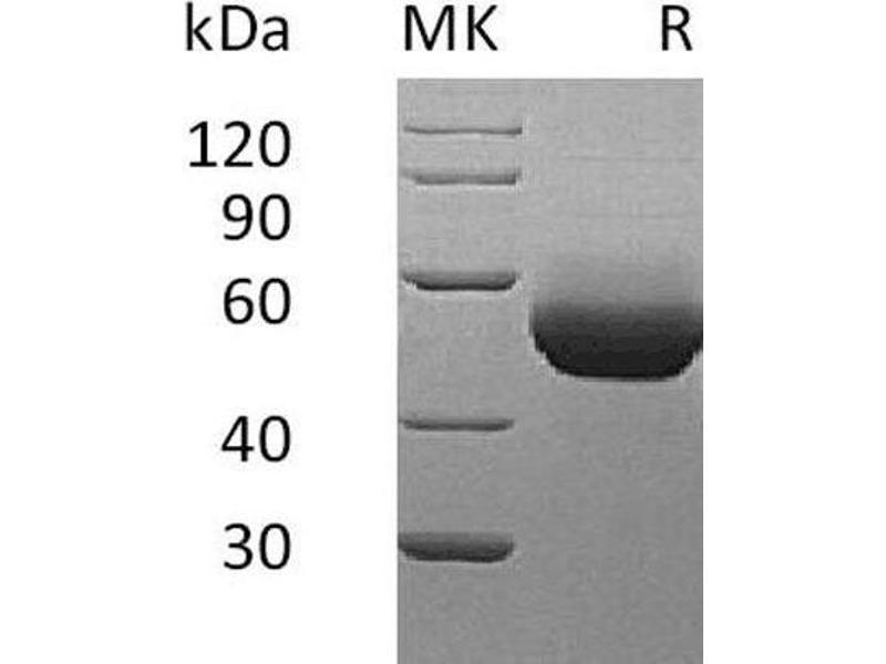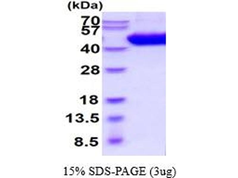 The purity of the protein is greater than 90 % as determined by SDS-PAGE and Coomassie blue staining.