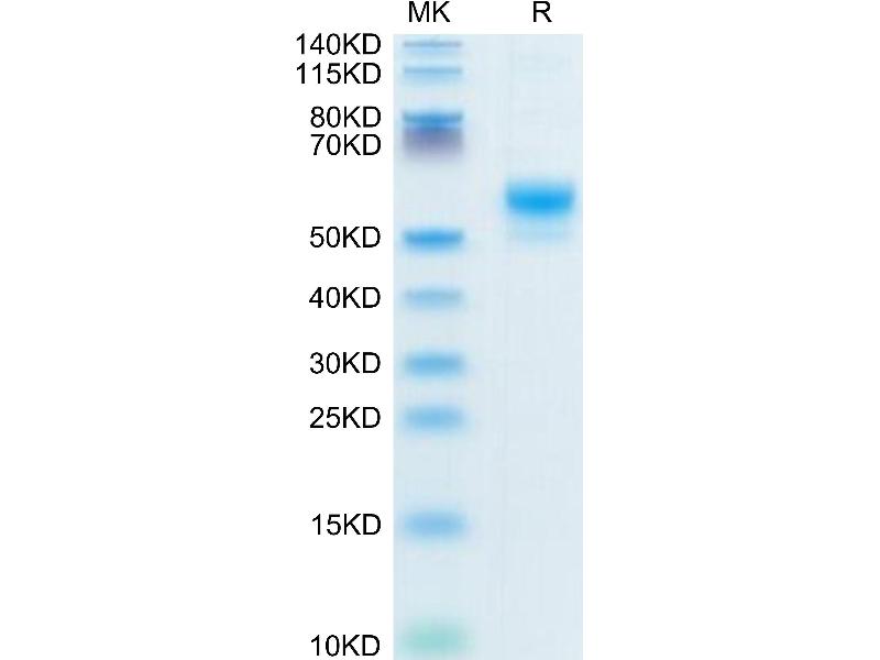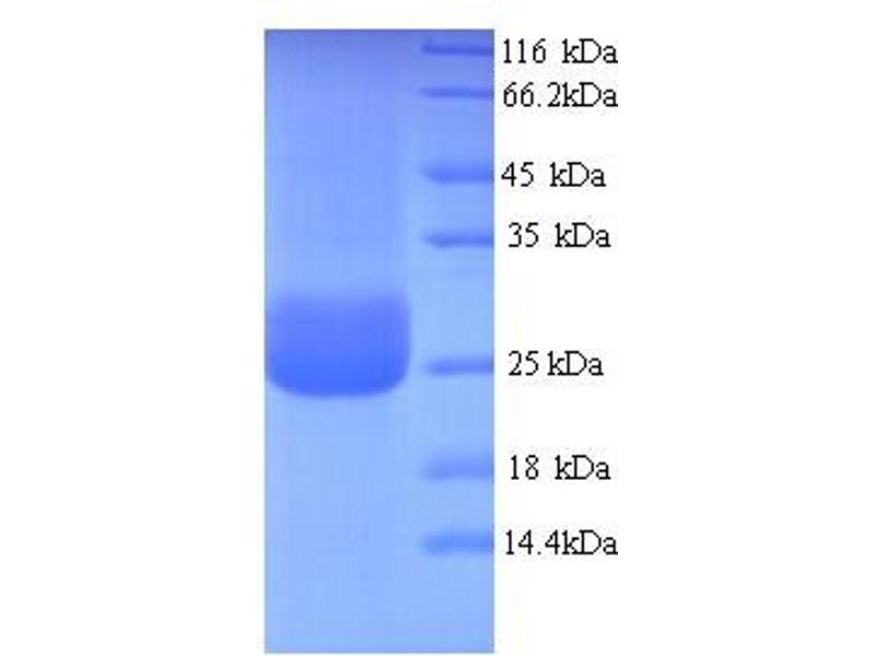 The purity of the protein is greater than 95 % as determined by SDS-PAGE and Coomassie blue staining.