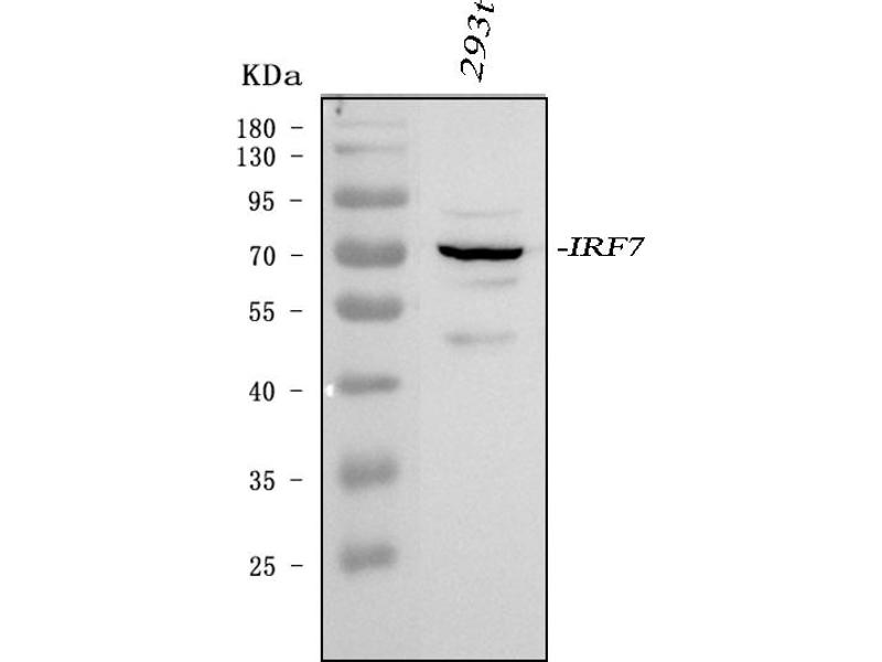 IRF7 适用: 人 WB, IF, IHC (p), ICC, IP 宿主: 兔 Monoclonal unconjugated Recombinant Antibody