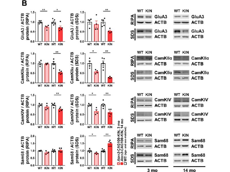 Arsović, Halbach, Canet-Pons, Esen-Sehir, Döring, Freudenberg, Czechowska, Seidel, Baader, Gispert, Sen, Auburger: "Mouse Ataxin-2 Expansion Downregulates CamKII and Other Calcium Signaling Factors, Impairing Granule-Purkinje Neuron Synaptic Strength." in: International journal of molecular sciences, Vol. 21, Issue 18, (2021) (PubMed).
