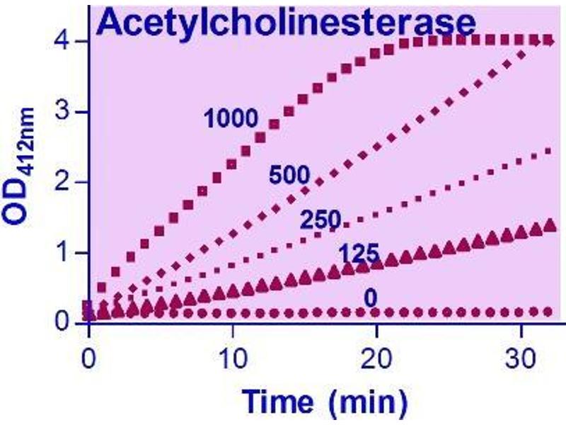 Sensitive and accurate. Detection range 10 to 600 U/L AChE activity in 96-well plate assay.