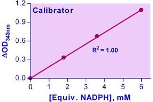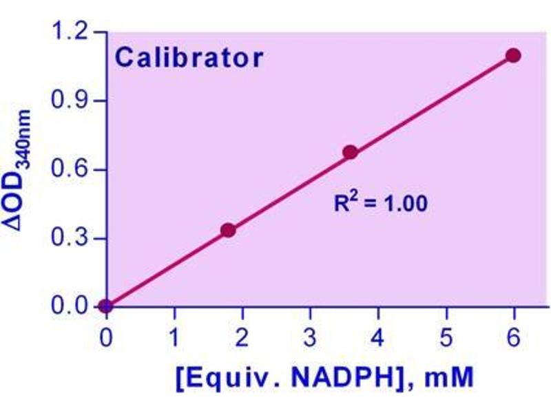 1. Standards and Samples. Mix 12 µL of the Calibrator with 188 µL dH2O (equivalent to 6 mM NADPH). Dilute this calibrator stock as shown in the Table below. Transfer 10 µL standards into wells of a clear flat-bottom 96-well plate. Add 190 µL Assay Buffer to all standard wells. Transfer 10 µL sample and 10 µL reconstituted GPX Positive Control into separate wells of the 96-well plate. In addition, for each assay run, include a background control that only contains 10 µL Assay Buffer. Note: (1). For unknown samples, perform several dilutions to ensure that GPX activity is within the linear range of 12 to 300 U/L. (2) The provided GPX serves as a positive control to ensure assay is working and should not be used to calculate the Sample GPX activity. 2. Assay. Prepare enough Working Reagent for Sample and Control wells by mixing, for each well, 85 µL Assay Buffer, 2 µL Glutathione, 2 µL 35 mM NADPH and 8 µL GR enzyme. Add 90 µL Working Reagent quickly to the Sample/Control wells. Tap plate to mix. Dilute 8 µL 3% H2O2 with 1992 µL dH2O (final 3.5 mM). Prepare enough 0.35 mM H2O2 Reagent by mixing, for each Sample/Control well, 12 µL 3.5 mM with 108 µL dH2O. Use this Reagent within one hour. With a multi-channel pipettor, add 100 µL 0.35 mM H2O2 Reagent to all Sample and Control wells. Tap plate quickly to mix well contents thoroughly. Immediately read OD340nm (time zero, OD0) and again at 4 min (OD4).